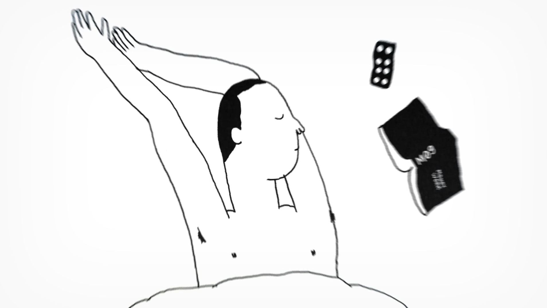 Brilliant animated short. A lonely insomniac arrives at a seaside resort. His loneliness soon morphs into an obsession with a mysterious woman he meets in a flower shop, which he tries to quell by watching endless games 0f billiards on TV. The ensuing tale of Kafkaesque alienation is conveyed entirely without words. (Warning: animated nudity) (11m 53s)